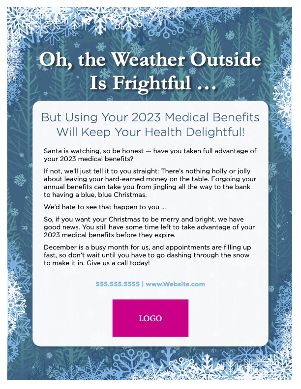 2023 Use ‘Em or Lose ‘Em FSIs Get All Three Added to Your End-of-Year Newsletters! Sample FSIs Copy will be customized for your specific industry/practice.